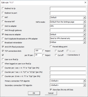 New in version: + Ability to specify in special rule settings both the overall TCP connection limit for a rule and the limit for IP address pairs (source and destination) for a rule, along with related options.+ Pseudo-random numbers for NAT ports and ping identifiers. + Expanded ranges for NAT ports.